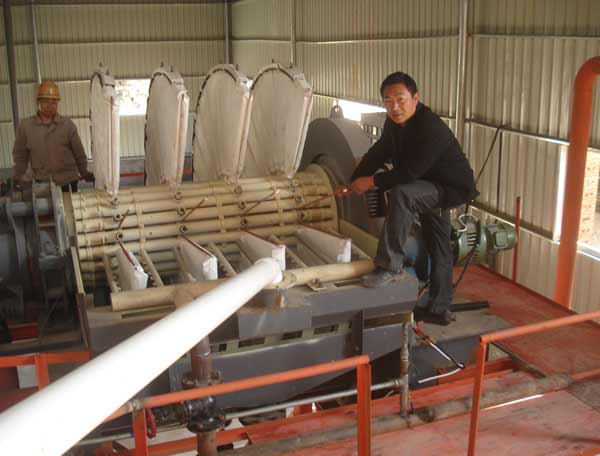5、精選:將去掉三氧化二鐵的物料送入1024型強(qiáng)磁重選機(jī)進(jìn)行精選,選出鐵、云母物質(zhì),然后將物料送入1018×2型普通磁選機(jī),再次分選;注意:目前利用磁選機(jī)除鉀長石中的鐵不適合全部鉀長石礦山,目前浮選工藝已得到廣泛應(yīng)用。